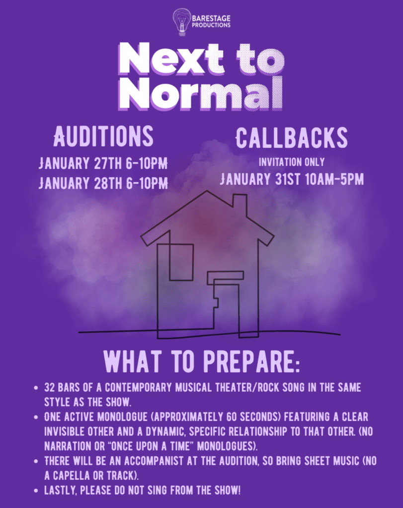 Auditions for Next to Normal have now passed. Stay tuned for show details!