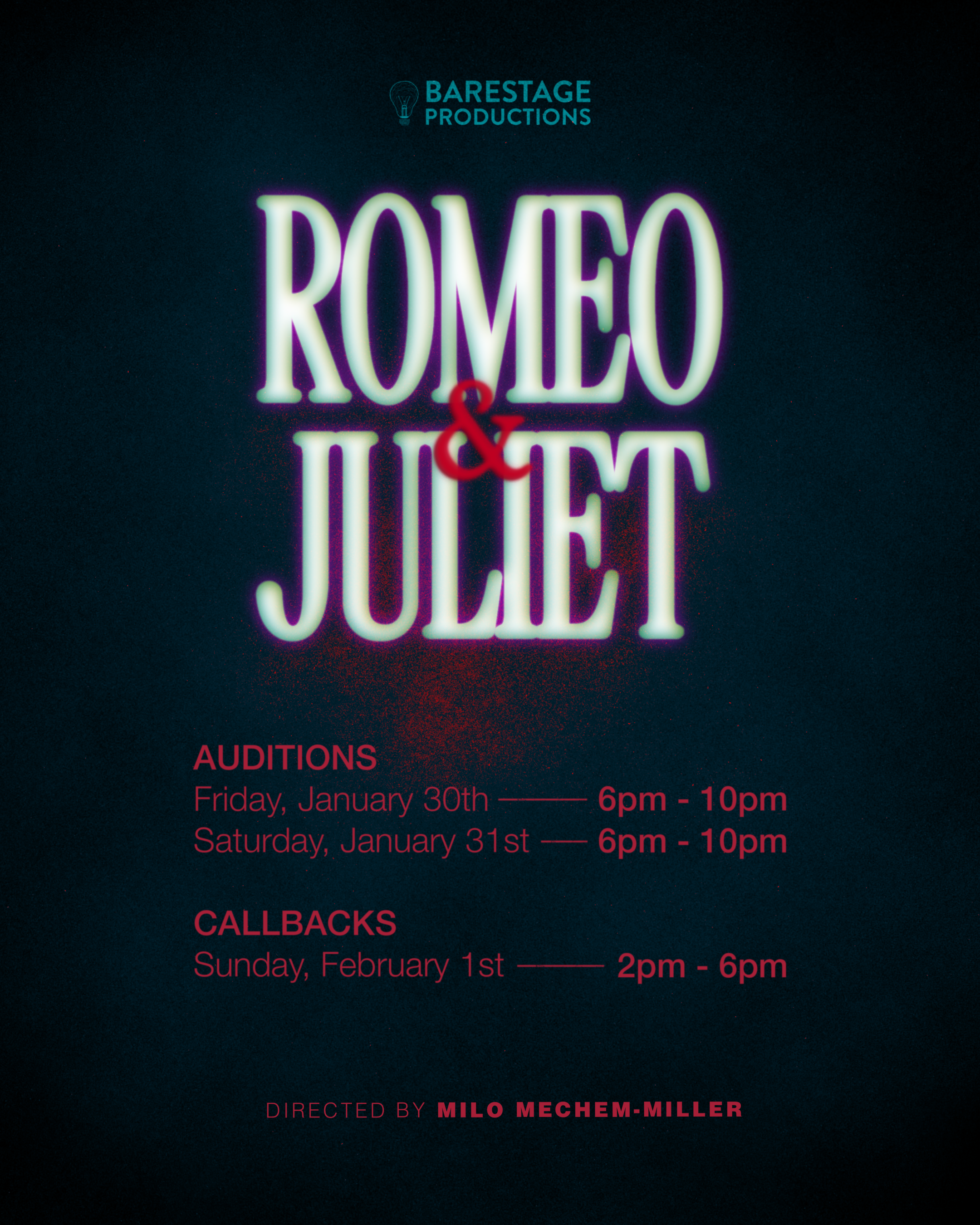Auditions for Romeo and Juliet have now passed. Stay tuned for show details!